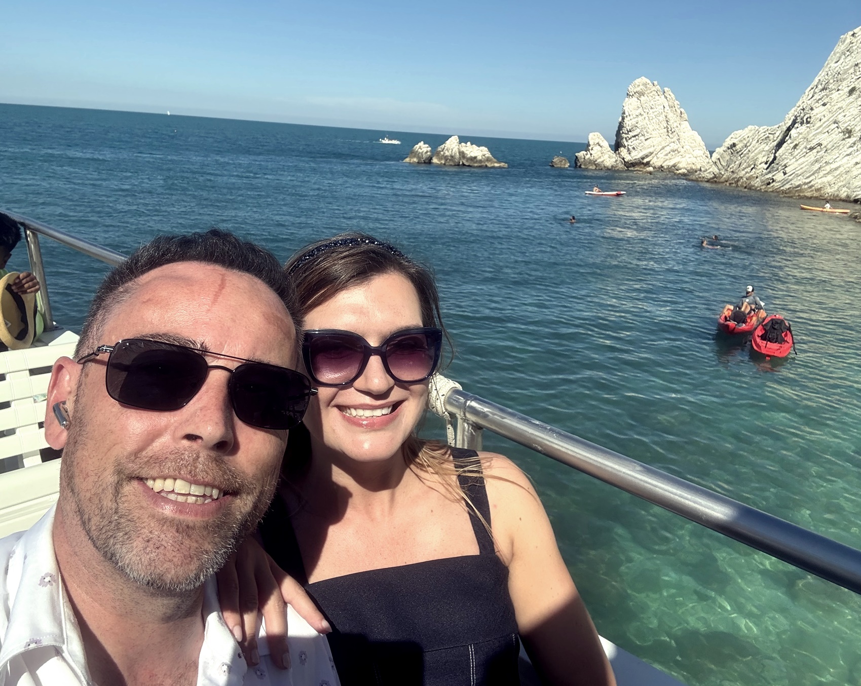 I tak rozpoczęła się ta „historia miłosna”… no cóż, w pewnym sensie… Wystarczyły jedynie cztery krótkie lata (czy cierpliwość nie jest częścią miłości?), zanim wreszcie mieliśmy swoją pierwszą randkę 19-go kwietnia 2023 roku. Już od tego pierwszego wieczoru czuliśmy, że to coś innego. Zrozumieliśmy, że łączy nas tak wiele: ogromna miłość do zwierząt, znaczenie rodziny i przyjaciół, duma z naszych polskich i irlandzkich korzeni oraz zerowa tolerancja dla nonsensu (ulubione słowo Ilony). Do tego wspólna fascynacja serialami kryminalnymi i seryjnymi mordercami sprawiła, że wiedzieliśmy, iż znaleźliśmy coś wyjątkowego – Ilona ma szczególne zainteresowanie „zabójcami od walizek”, dlatego Dave od razu po powrocie z wakacji znosi walizki do piwnicy, tak na wszelki wypadek 🥰